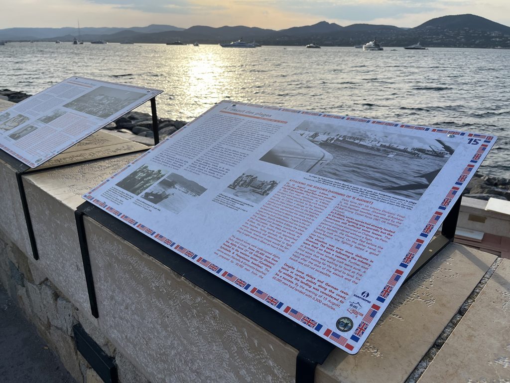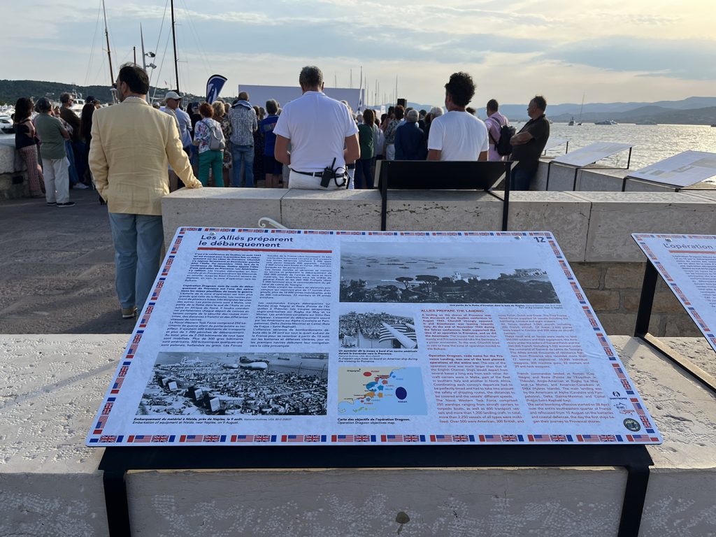Panneaux en dibon sur le port de Saint-Tropez à l’occasion du 80e anniversaire du débarquement en Provence.